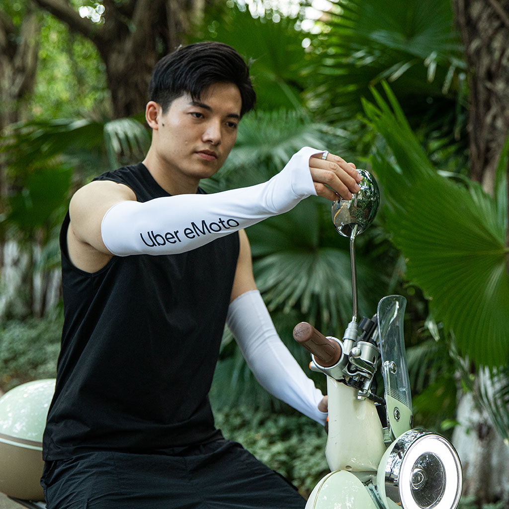Uber Eats 品牌防 UV 袖套。外送夥伴必備的防曬配件,有效保護手臂免受紫外線傷害,適合長時間戶外配送使用。